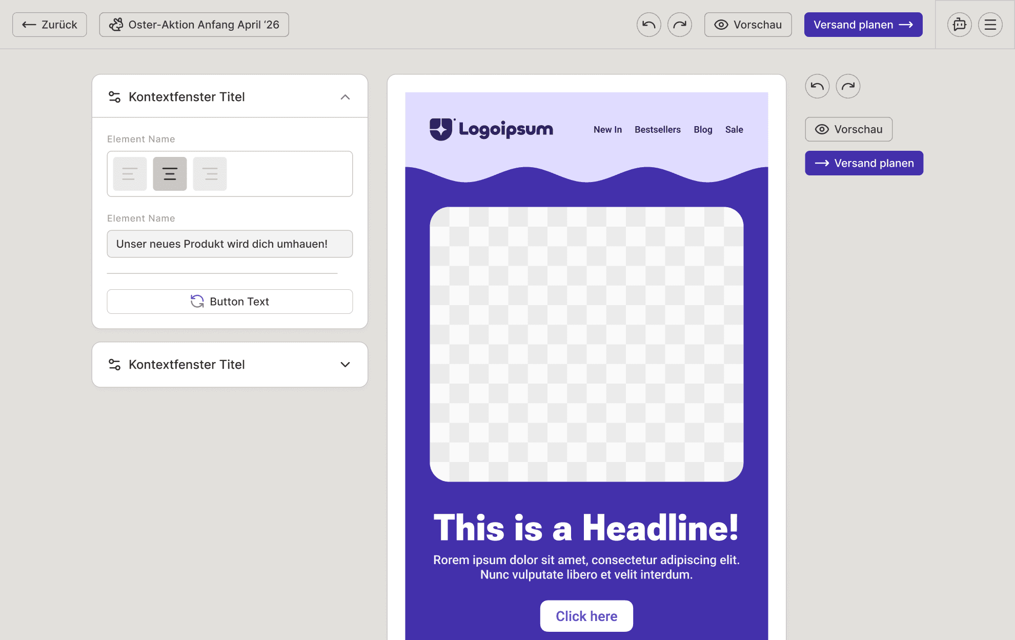 Not happy with a section? Flip through different layouts in seconds. Every layout works with the rest of the email and the content that's already there, so you can experiment freely without breaking anything.