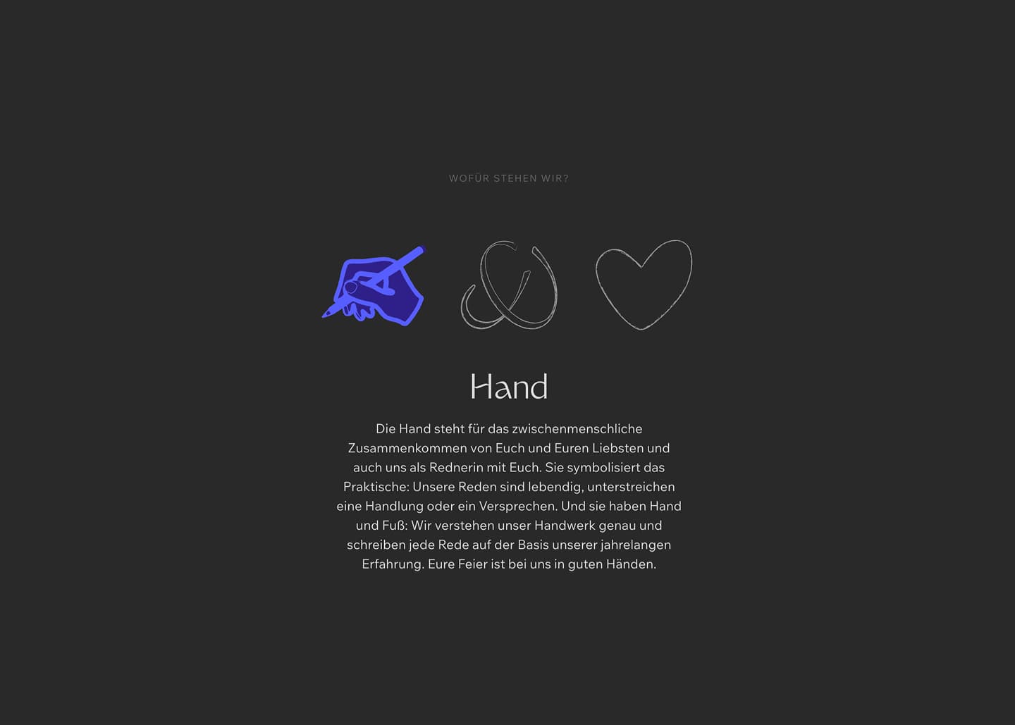 hand & herz is a collective of professional speakers who write and deliver personalized ceremonies for the entire circle of life. Unlike traditional providers who often specialize in just one area, their work spans the full emotional spectrum. They accompany couples on their wedding day with joy, preside over naming ceremonies for newborns, and guide families through funerals with dignity and grace. Their craft is rooted in deep listening: they interview clients to create unique speeches that honor the reality of the people involved—whether in celebration or in mourning.